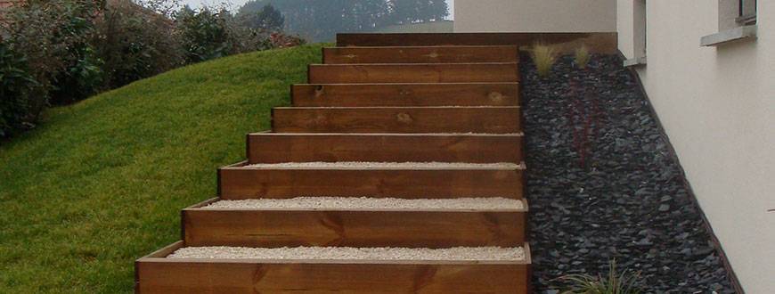 - Escaliers : Selon vos envies vous pouvez avoir un escalier en bois traité, en béton, en pierres naturelles ou bien encore en pavés… A vous de choisir.