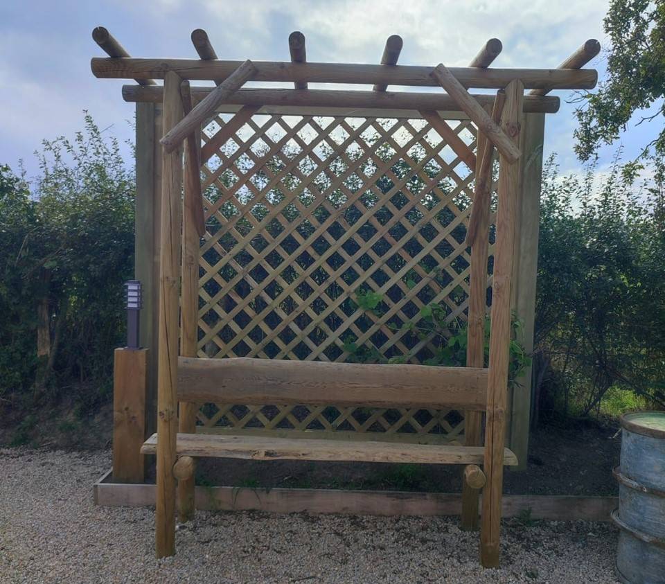 Nous sommes heureux de vous présenter la création d’un banc avec pergola intégrée réalisée pour notre client à Riorges.